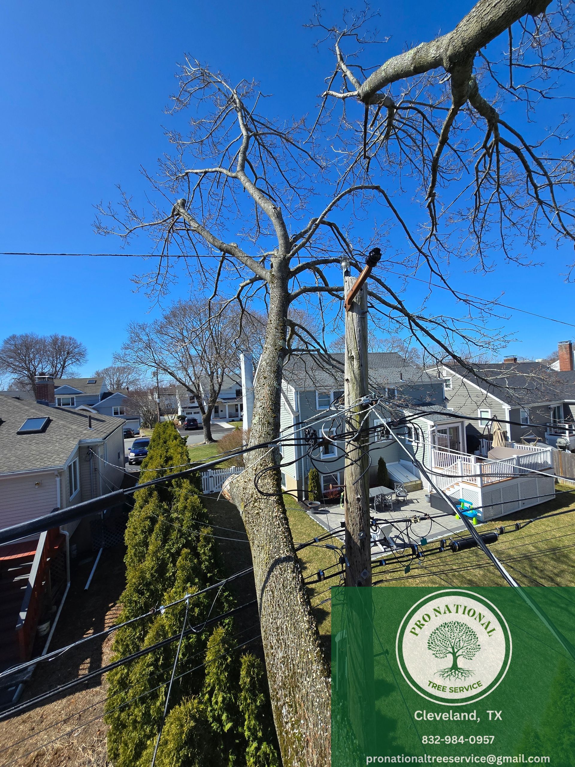 Trees growing near power lines can quickly turn into a serious safety concern, and this is something many homeowners in Cleveland, TX deal with. At Pro National Tree Service, we specialize in professional tree trimming and tree removal near power lines to help protect homes, utilities, and surrounding property. Power lines and trees do not mix well, especially during storms, high winds, or heavy rain. Taking care of the problem early can help prevent outages, property damage, and dangerous situations. Overgrown branches can rub against power lines, block access for utility crews, and increase the risk of sparks or fallen lines. Our team provides careful tree trimming to clear limbs away from power lines while keeping the tree healthy and balanced. Proper trimming improves airflow, reduces stress on branches, and lowers the chance of limbs breaking during bad weather. Many homeowners call us for tree trimming in Cleveland, TX when trees start growing too close to lines or structures. In some cases, trimming alone is not enough to solve the problem. When a tree is too close to power lines or has structural issues, full tree removal may be the safest option. Our crew at Pro National Tree Service handles tree removal near power lines using controlled cuts and safe lowering techniques. This approach helps protect nearby homes, fences, and landscaping while keeping everyone on site safe. Professional tree removal is often the best long-term solution for high-risk trees. Safety is always our top priority during these jobs. We use proper climbing methods, professional equipment, and clear communication to keep the work area controlled and organized. Tree removal and trimming near power lines should never be handled as a DIY project because of the risks involved. Hiring a trained tree service company helps reduce danger and ensures the job is done correctly from start to finish. After the work is complete, we handle full cleanup so your yard is left neat and usable. Pro National Tree Service provides reliable tree trimming, tree removal, stump grinding, and full tree care for residential and commercial properties in Cleveland, TX and surrounding areas. If you have trees growing near power lines and need professional help, our local team is ready to provide safe, dependable tree services you can trust. Pro National Tree Service Proudly serving Cleveland, Dayton, Livingston, and the surrounding areas